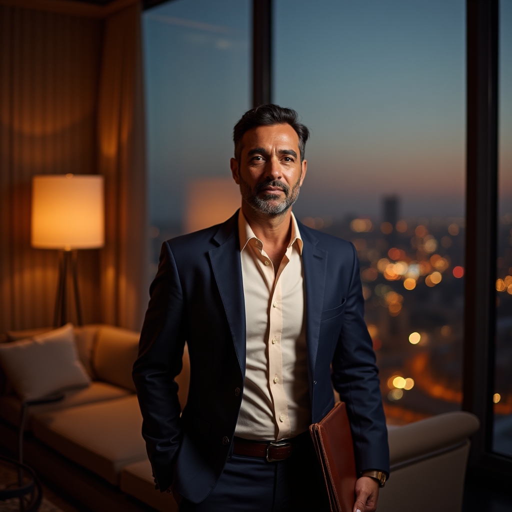 Mexican entrepreneur studying financial concepts at a modern workspace